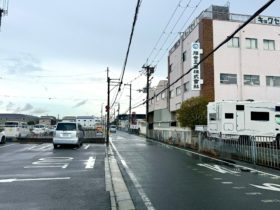 正解は、、、〒579-8048 大阪府東大阪市旭町22-28付近から西へ向かって撮影しました。左手側はスギドラッグやコインランドリーなど…