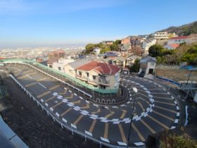 正解は、、、〒579-8013 大阪府東大阪市西石切町1-11、東山の交差点を南西に向かって歩道橋から撮影。写真右手は新石切駅…