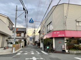 正解は、、、〒578-0946 大阪府東大阪市瓜生堂2-6付近、「喫茶ふじた」を右手に東に向かって撮影しました。このまま直進す…