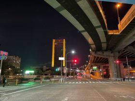 正解は、、、〒578-0943 大阪府東大阪市若江南町1-4付近、第二寝屋川に架かる八幸橋から八尾枚方線を北に向かって撮影しました。橋の…