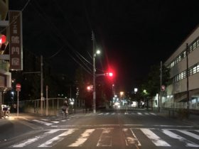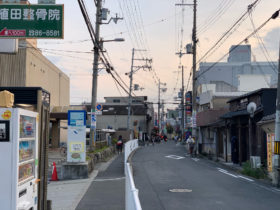 正解は、、、〒577-0801 大阪府東大阪市小阪3-2付近、八戸ノ里駅北側の道路を東に向かって撮影。夜のため見えづらいです…