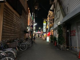 正解は、、、〒〒577-0057 大阪府東大阪市足代新町4付近、ブランドーリ布施1番街を背後に西に向かって撮影。布施の飲み屋…