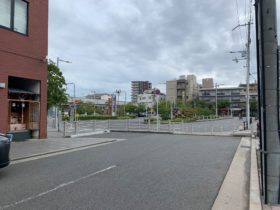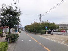 正解は、、、〒577-0804 大阪府東大阪市中小阪5-14付近。八戸の里公園駐車場と東大阪アリーナを右手に東に向かって撮影…