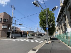 正解は、、、〒577-0843 大阪府東大阪市荒川2丁目24付近。俊徳道駅を背後に、近鉄大阪線沿いの道路を布施駅方面に向かって…