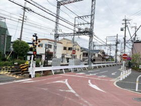 正解は、、、〒579-8022 大阪府東大阪市山手町2付近。額田駅東側のミニロータリーから、北側踏切に向かって撮影。ポイントは…