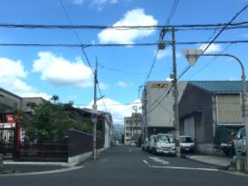 〒578-0961 大阪府東大阪市南鴻池町2-12付近。東大阪楠風荘郵便局を左手に見て西を撮影。直進すると、市…