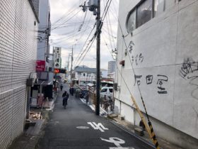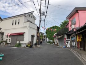 〒579-8058 大阪府東大阪市神田町3付近。ジンジャモール瓢箪山の呉服店・石田屋の南側の道路を西に向かって…