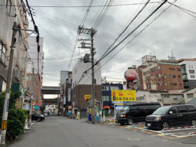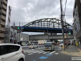 〒577-0809 大阪府東大阪市永和1-25。田代珈琲から西、俊徳道駅立体高架を撮影。たぶん、クイズにして出題…