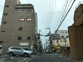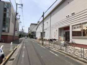 東大阪市御厨栄町1丁目6-6付近。小阪イオンタウン小阪店北側の道路から、西に向いて撮影。