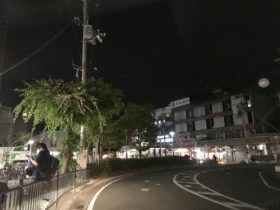 東大阪市玉串元町2-12付近。玉串川沿い府道15号線、玉串橋南詰交差点から南に向かって。左に見えるのは玉串元町団地、右…