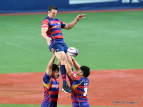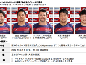 ファーストピッチセレモニーにラグビートップリーグ『近鉄ライナーズ』の主力5選手が登場!J:COM presen…