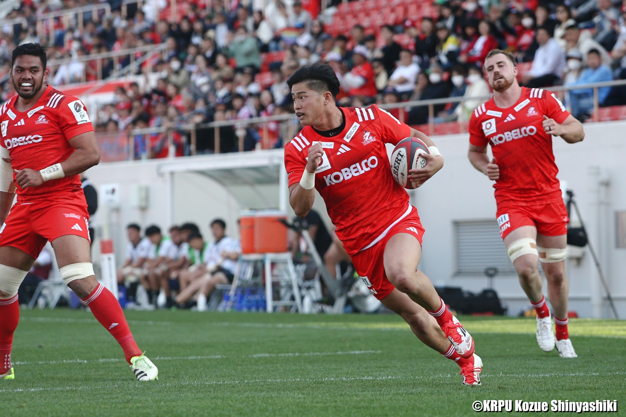昨季まで近大、今季からコベルコ神戸スティーラーズに所属するWTB植田和磨。日本代表にも選ばれた。
