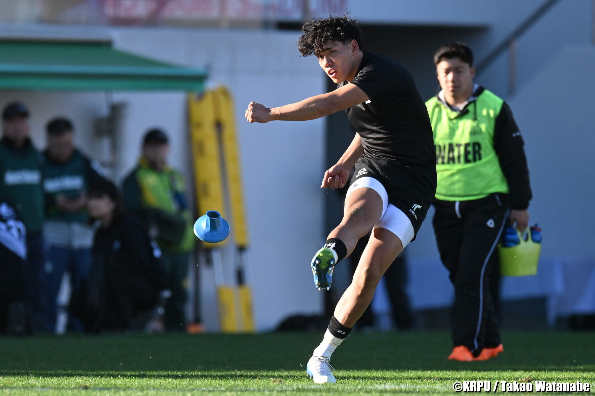 昨季途中からSOにコンバートされた上ノ坊駿介主将は、長く正確なタッチキックと50:22、ハイパントで相手にプレッシャーをかけ続け、グラウンドを支配する力を誇示し続けます。