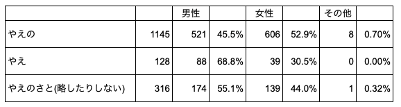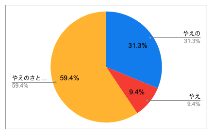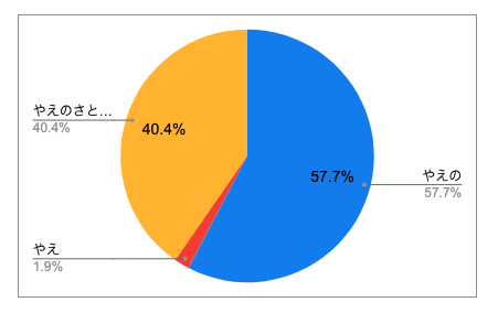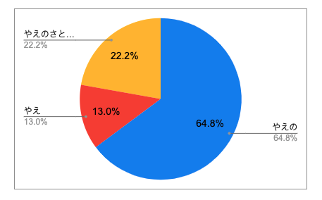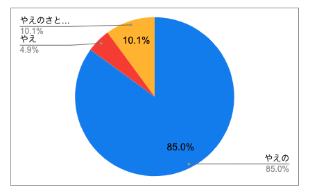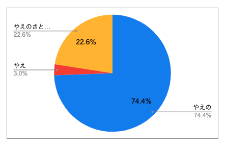 全世代だと70%が「やえの」なのに、20代は75%。やえの派は多い世代と言えそうです。