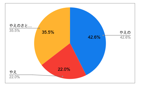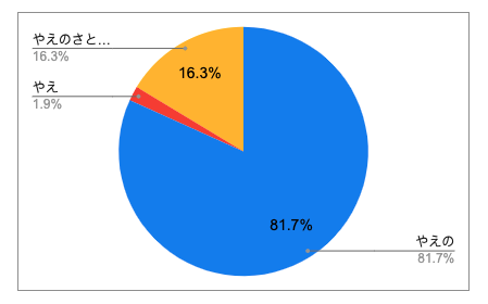 「やえのさと(略したりしない)」も選択肢に含んでいるのに70%が「やえの」って言うなんて、もう正式名称がやえのでもいいんじゃないかと思うくらいです。