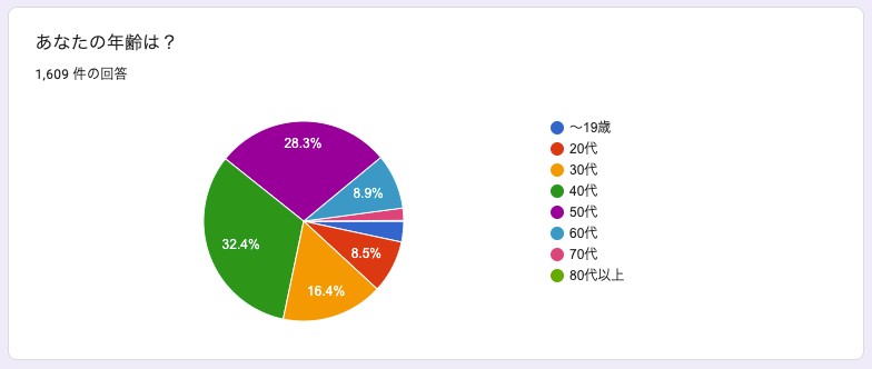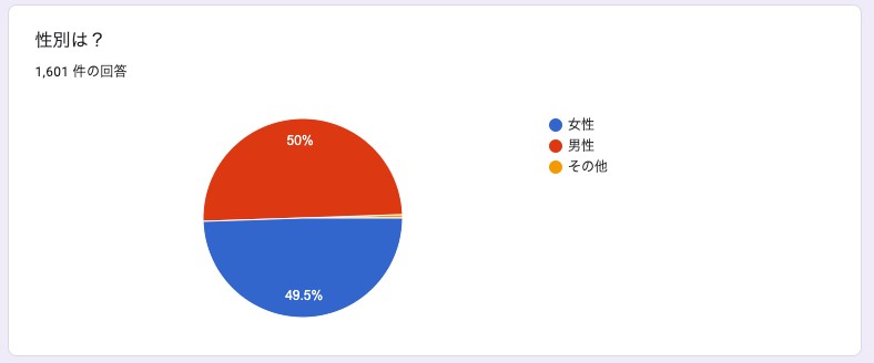 きれいに半々になった男女比。1600件も集まれば、こんな感じになりますね。