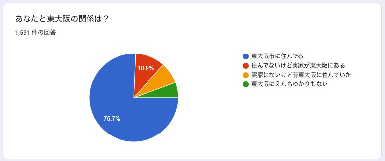 お答えいただいた方の住んでいる場所はこんな感じ。約75%の方が東大阪在住。
