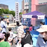 盛り上がる布施駅前。模擬店はゲームや展示を中心に。