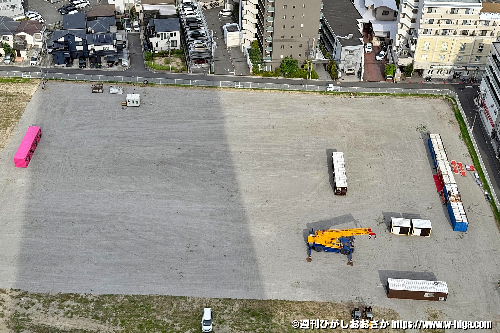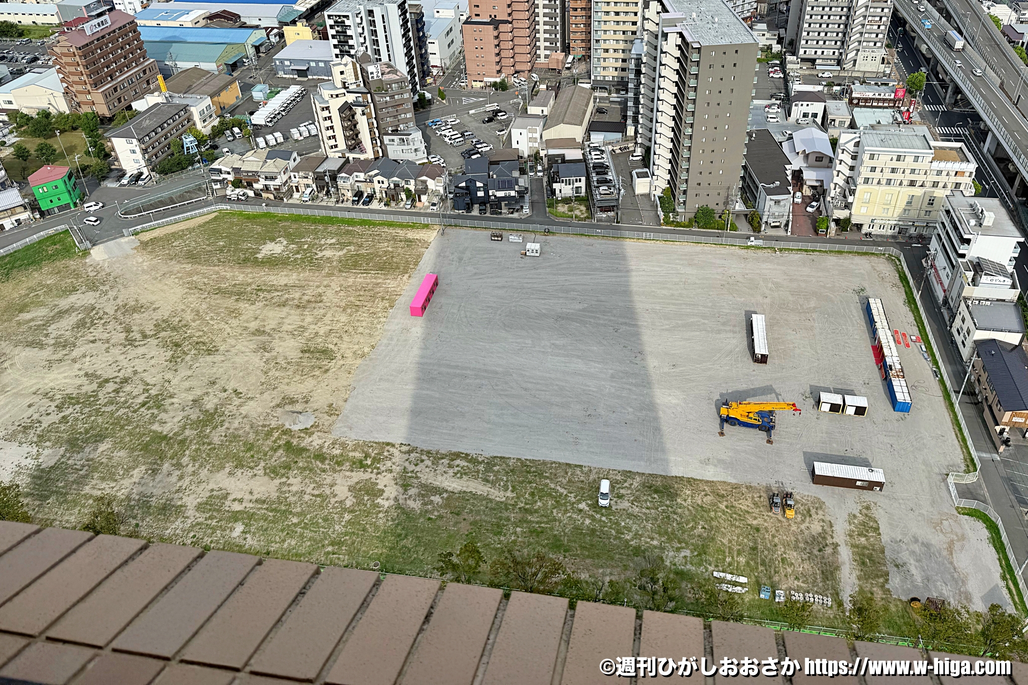 いずれは大阪モノレールの(仮)荒本駅ができる予定ですが、工事が遅れていてしばらく空き地のまま動きがありませんでした。