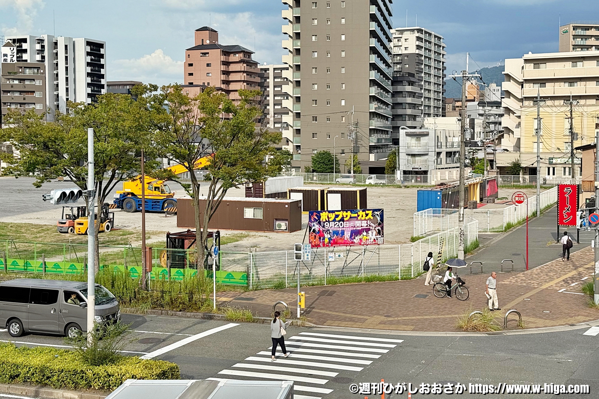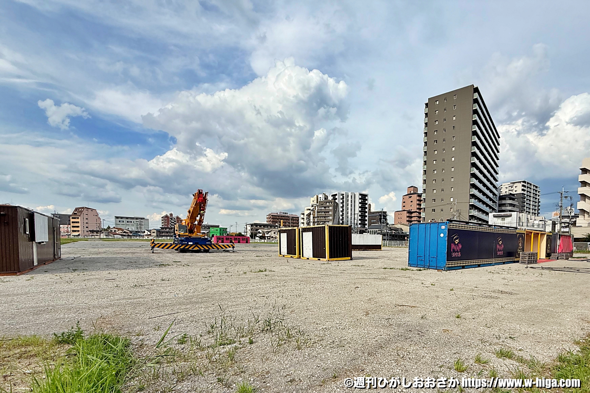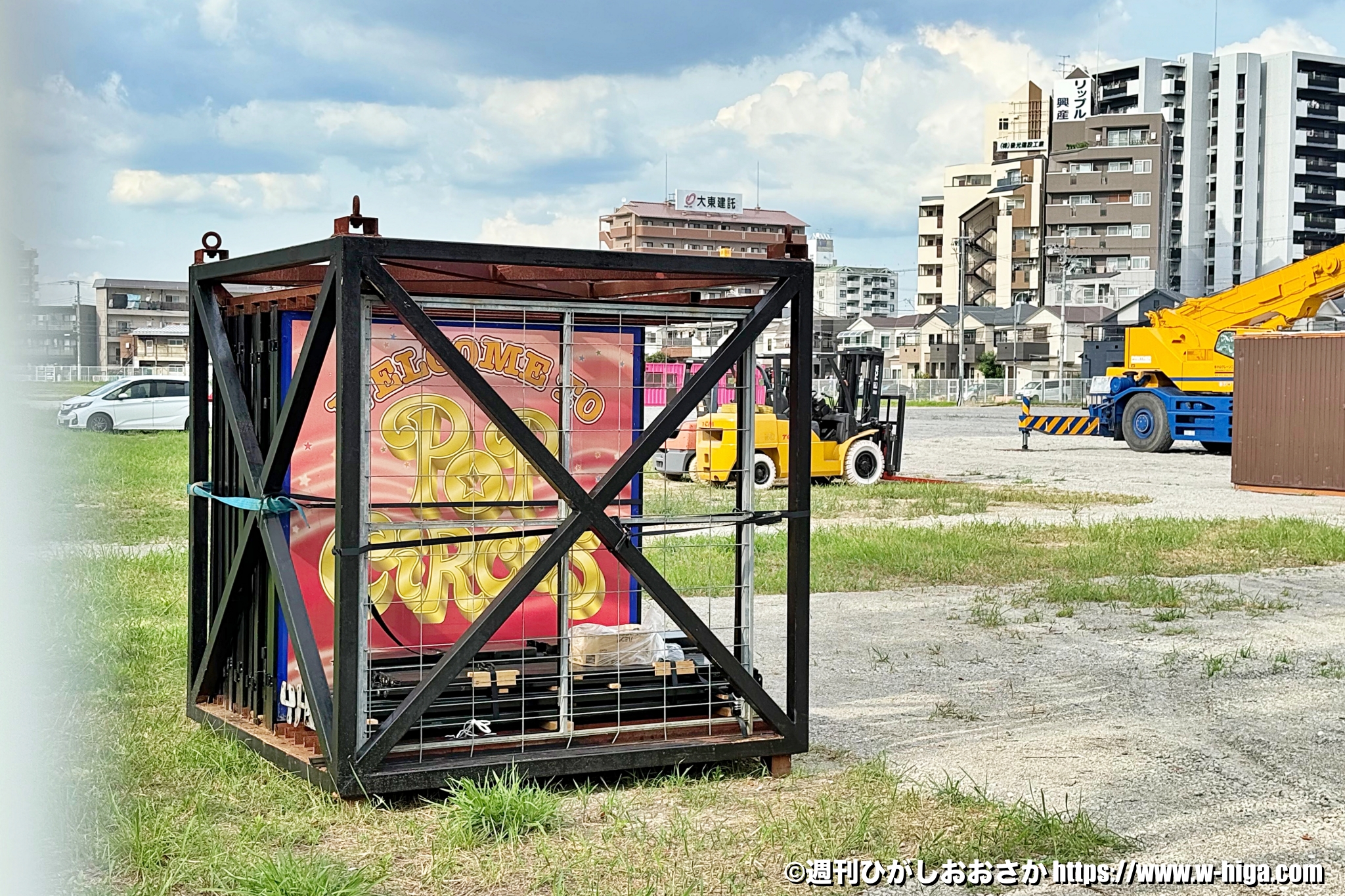 現在は9月20日(土)から始まる「ポップサーカス東大阪公演」開催に向け、準備が始まったところ。まだテントなどはなく、サーカスに使用する備品などが運ばれている状態でしょうか。