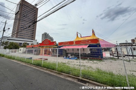 現在延伸工事中で、大阪モノレールの(仮)荒本駅ができる予定のイオン東大阪店跡地。工事が大幅に遅れ、しばらく空き地の状態が続いていました。