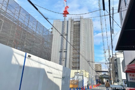 2024年2月2日に東側から撮影。当初は18階建てになる予定でしたが、紆余曲折あり14階建てに変更。
