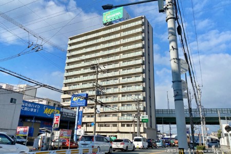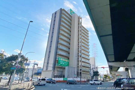 南(八尾枚方線)側から見ても、かなり大きなマンションだとわかります。