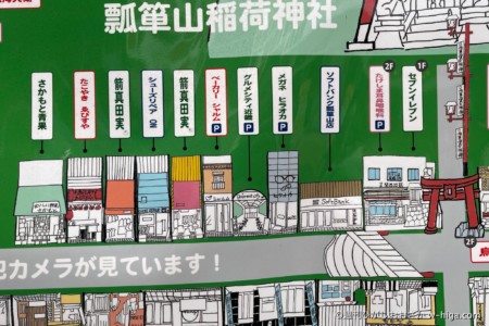 商店街に掲示されるマップからは、お店が並んでいたときの名残を感じます。商店街のお店の間にある入口から、奥のスーパーに入っていく独特のスタイルでした。