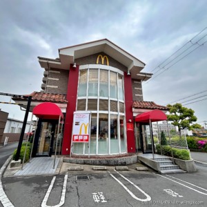 独特の建物がかっこいい。ドライブスルーが買い物しやすい、第二寝屋川沿いに建っていて遠くからも視認しやすいなどハード面でも優秀なファーストフード店。
