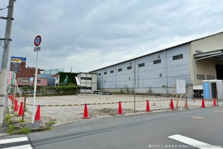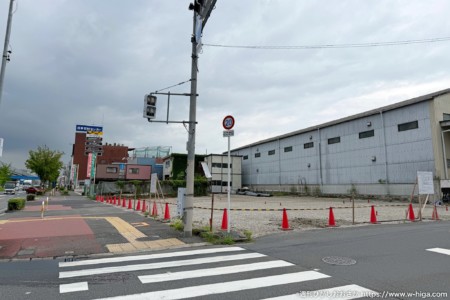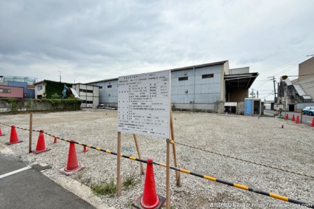 今回は11ヶ月ぶりに動きがあった「新家東町交差点・試写室アップル」跡地。ビデオ試写室の跡地→2024年8月には前払式の駐車場に変わり、2025年6月末には駐車場がなくなり更地に。