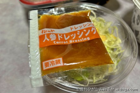 一部ファンに絶大な人気がある、人参ドレッシングをキャベツにかけてしまいます。