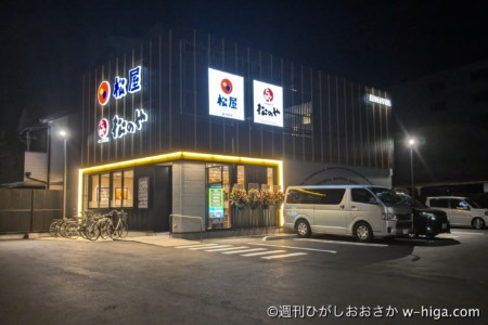 今回は、みんなが気になる牛丼店。府道2号旧中央環状線「七軒家交差点」から南に100m、ENEOS七軒家SS跡地改め「松屋松のや東大阪七軒家店」。もう予定地じゃない!