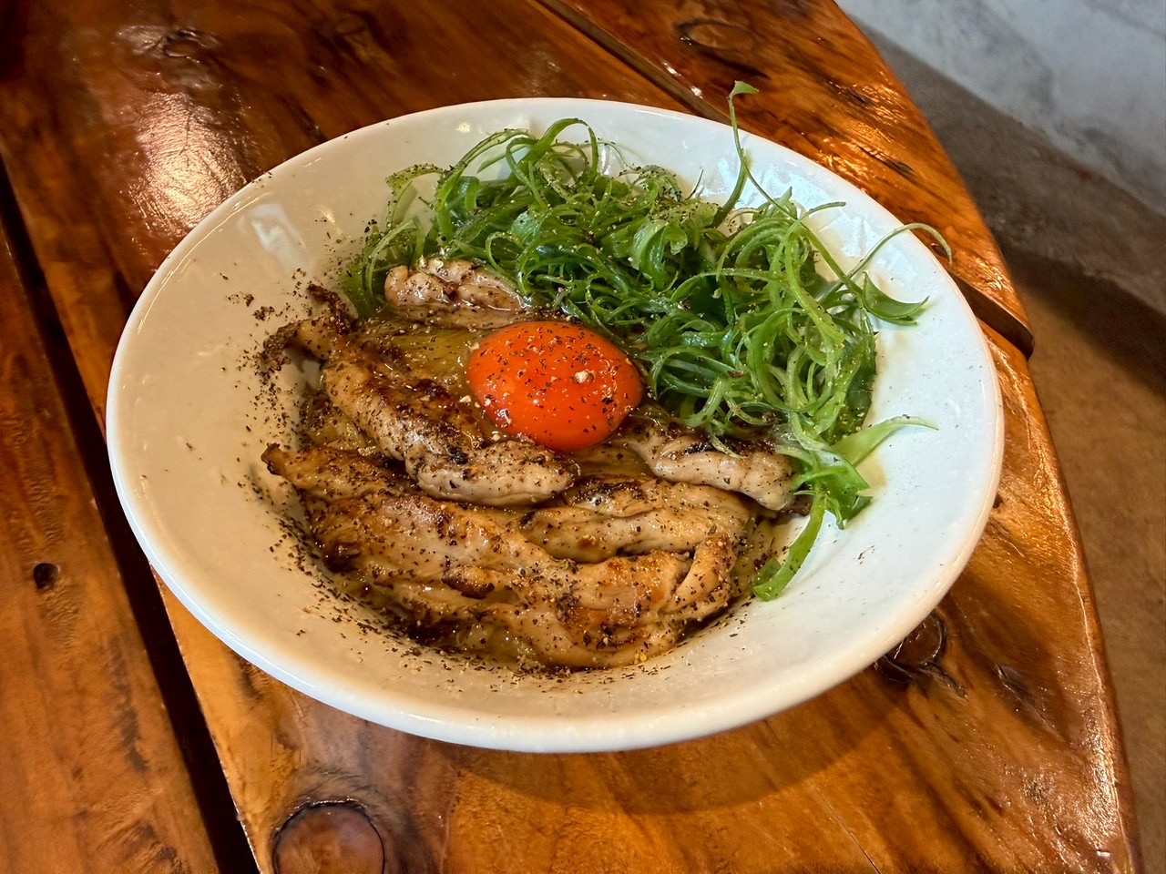 定番の「真骨頂」を差し置いて、現在絶好調な4月の限定それが「せせりと九条ねぎまぜそば」。ペッパーが程よいジャンクさを出している、人気も納得の1杯です。