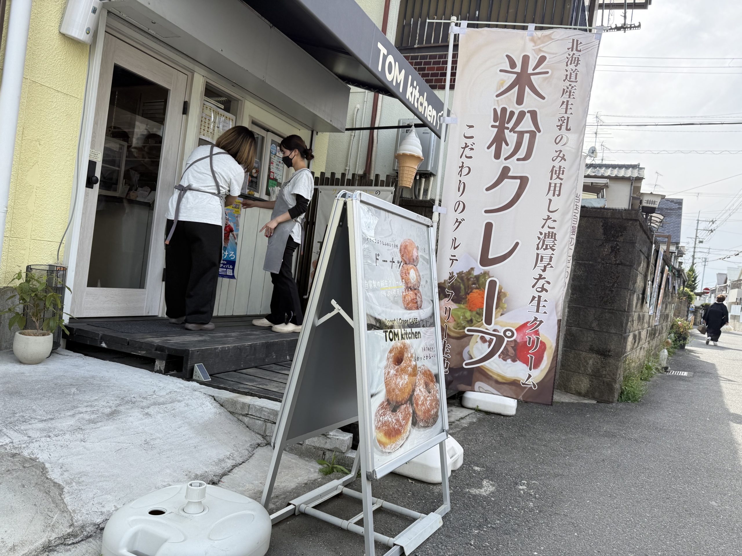 前日までの疲れがたたって、配信のお仕事をみんなにお任せした編集長前田。なんとか這い出して若江岩田駅から北へ徒歩5分の「TOM KITCHEN」へ。スイーツショップ?かな。クレープかなと思っていますたが、生ドーナツを購入してしまいました。だっておいしいんだもん。