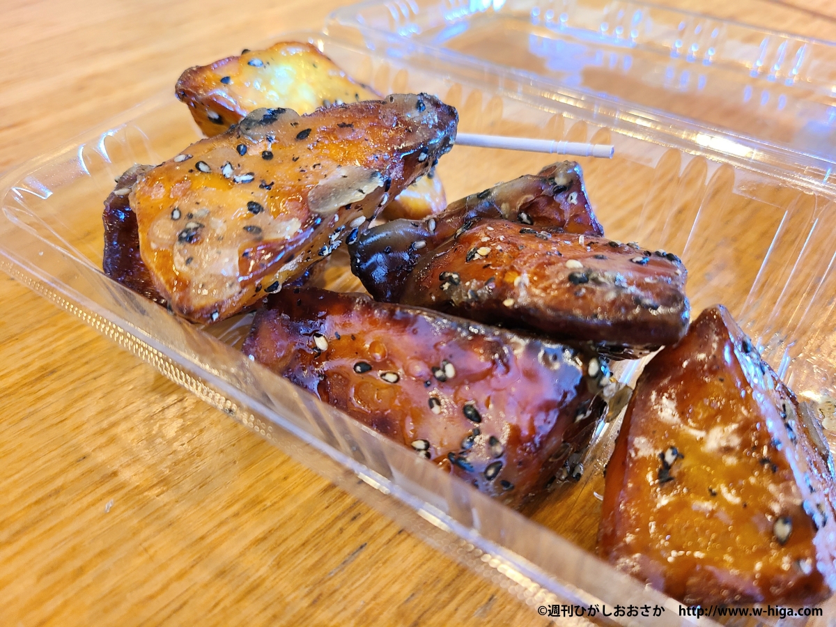 あとテイクアウトでプッシュされていたのは大学いも。冷やした状態でパックされている。いたってシンプルな大学いもだ。