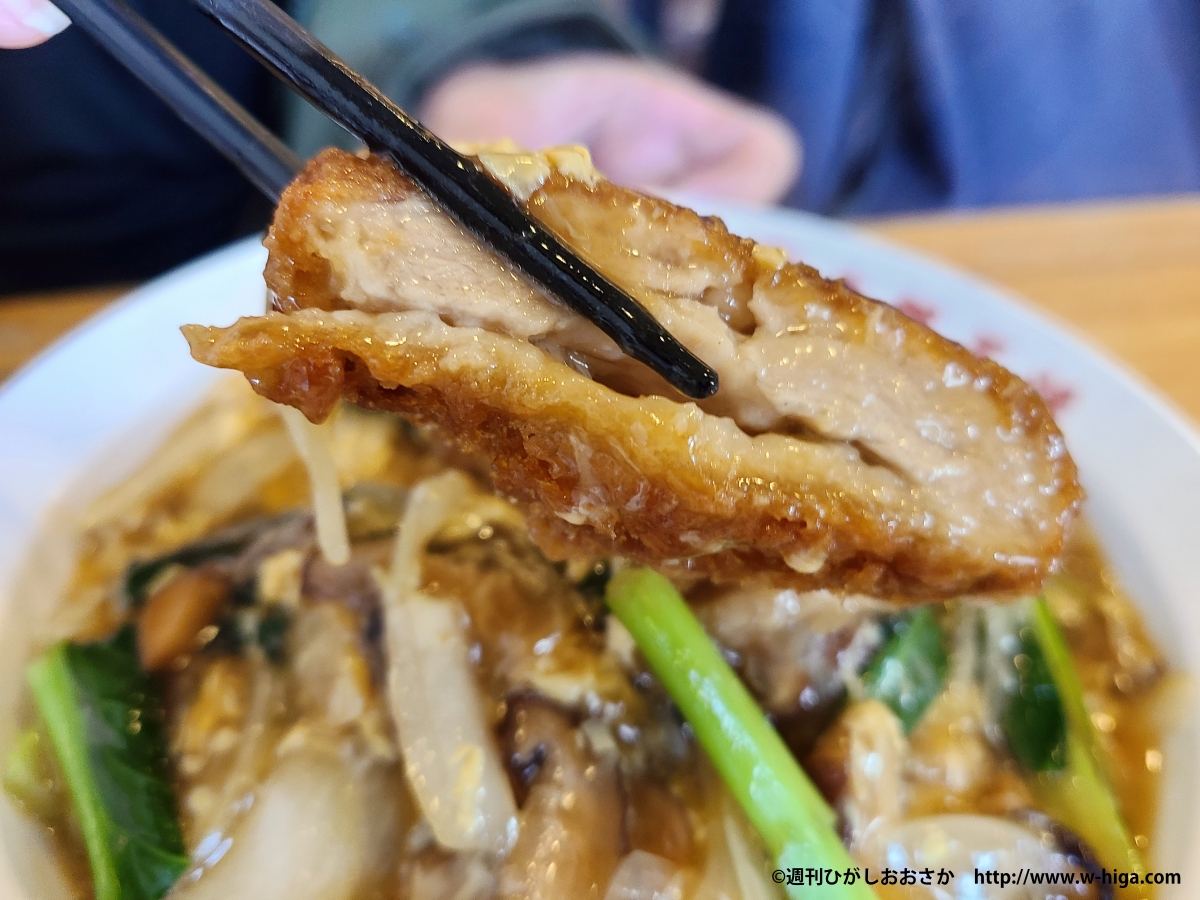 「王将カツ丼」も見逃せない。天津飯や炒飯にまぎれてメニュー表に並んでいるが、しいたけが入った中華風のカツ丼だ。
