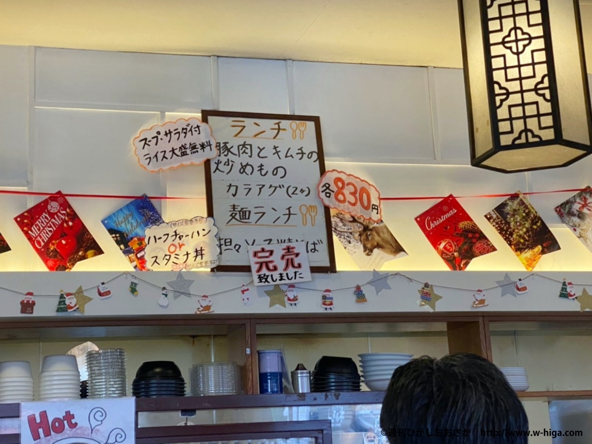日替わりの「麺ランチ」の存在も気になるが、訪れた日は12:30頃すでに完売。人気メニューと思われる。ハーフチャーハンもしくはスタ丼がついてくる、お得なセットであることは間違いない。