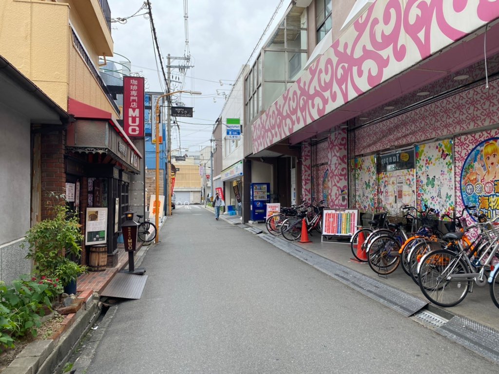 正解は、、、〒577-0816 大阪府東大阪市友井3-7付近。近鉄大阪線弥刀駅の南側、パチンコ店「マックムール」を右手に北に向かって撮影しました。背中にはコノミヤ弥刀店があります。このまま直進すると左手に駅改札です。