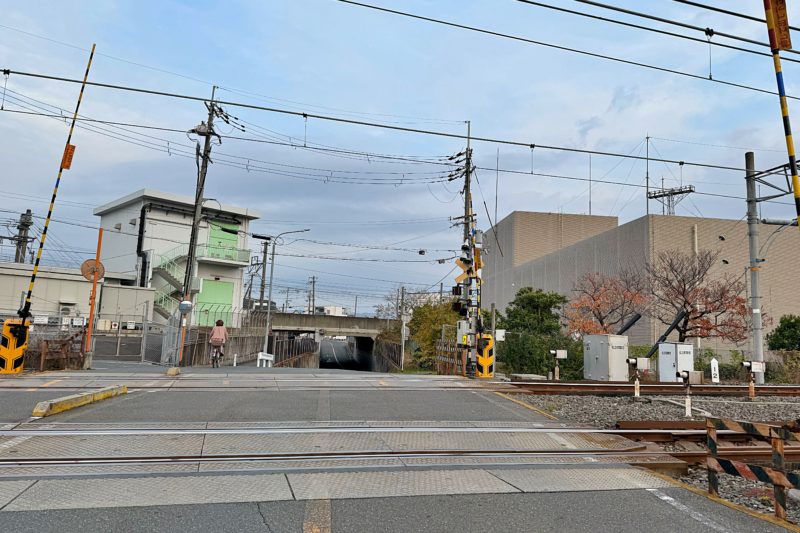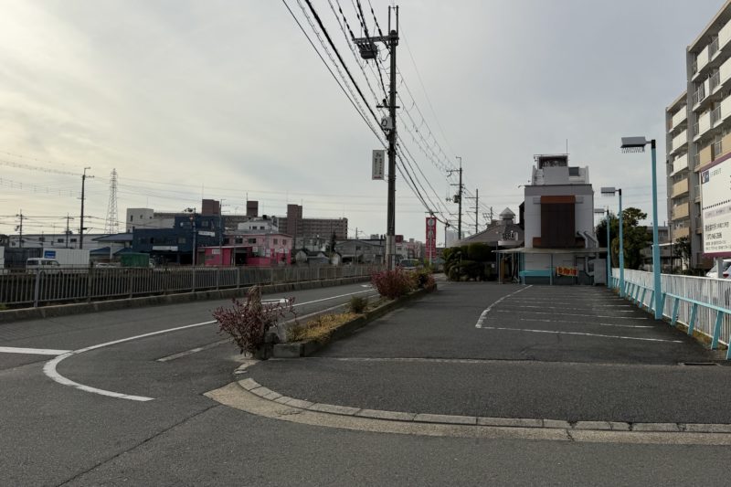 正解は、、、〒577-0803 大阪府東大阪市下小阪2-15付近。大阪府立布施高等学校のグラウンドと紀陽銀行八戸ノ里支店の間を西へ向かって撮影しました。撮影地点は旧府道2号線(旧大阪中央環状線)。南北に走っています。右後方には八戸ノ里駅のバスロータリー、左後方にはライフ八戸ノ里店が。