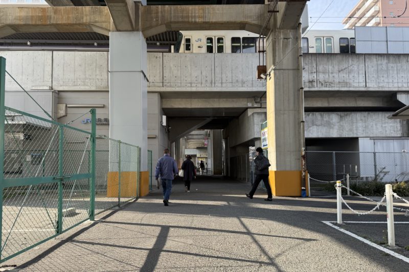 正面の高架はJR俊徳道駅。JRおおさか東線が全線開業してから、飲食店が駅前に多く集まる場所となった俊徳道。