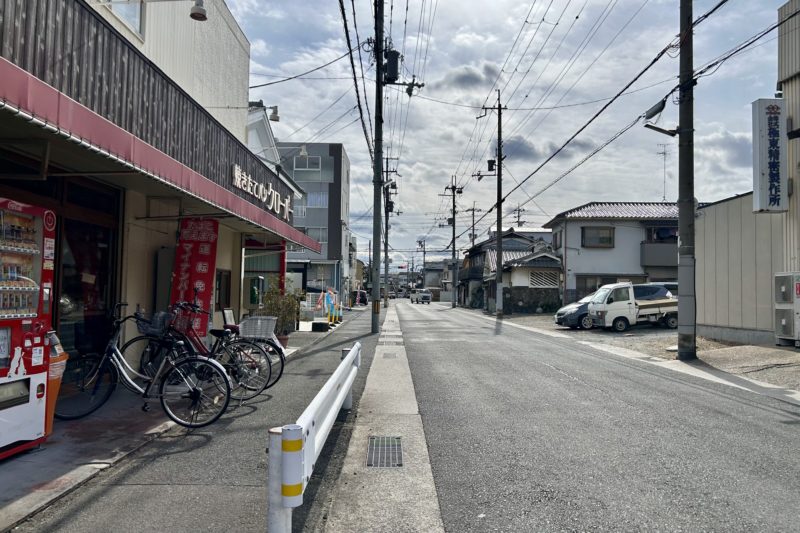 正解は、、、〒577-0054 大阪府東大阪市高井田元町2-1付近。河内永和駅の西側から北へ向かって撮影しました。背中側には近鉄奈良線の高架や東大阪市立永和図書館、東大阪商工会議所があります。
