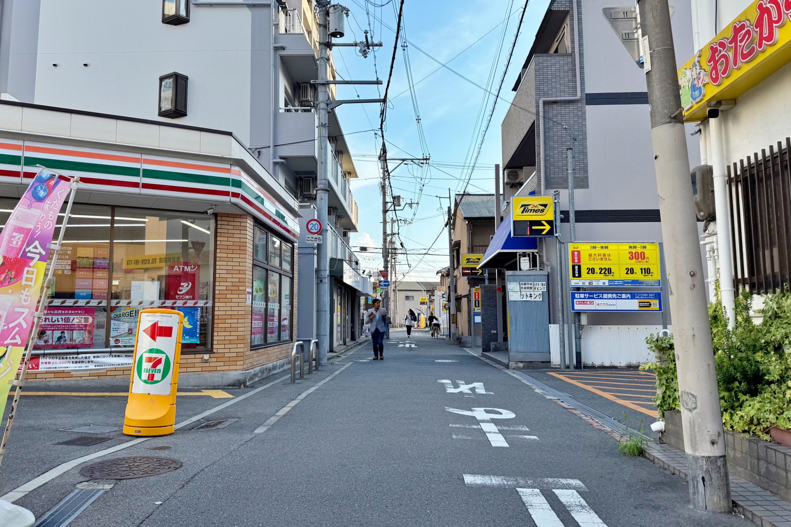 正解は、、、〒577-0841 大阪府東大阪市足代2-1付近を南に向かって撮影しました。後方は布施駅です。
