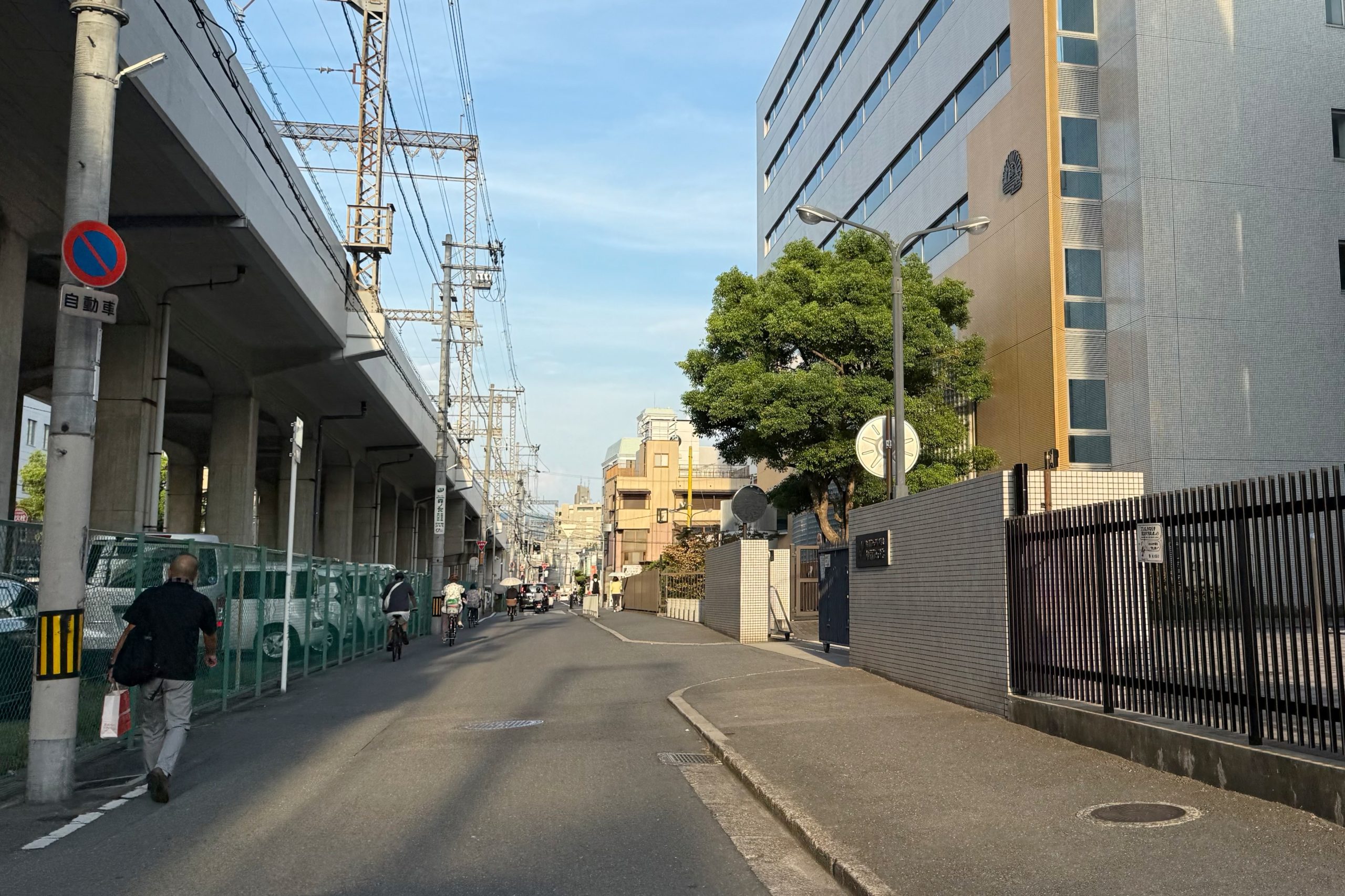 正解は、、、〒577-0807 大阪府東大阪市菱屋西4-2付近、大阪樟蔭女子大学前から東に向かって撮影しました。まっすぐ進むと河内小阪駅が見えてきます。