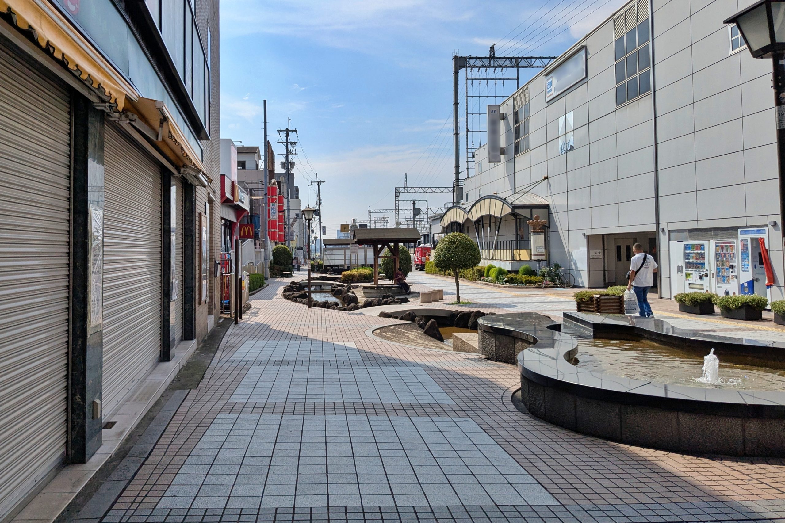 正解は、、、〒579-8058 大阪府東大阪市神田町1-1付近、近鉄瓢箪山駅南。瓢箪型の噴水が眩しい「せせらぎ広場」を東から西に向かって撮影しました。