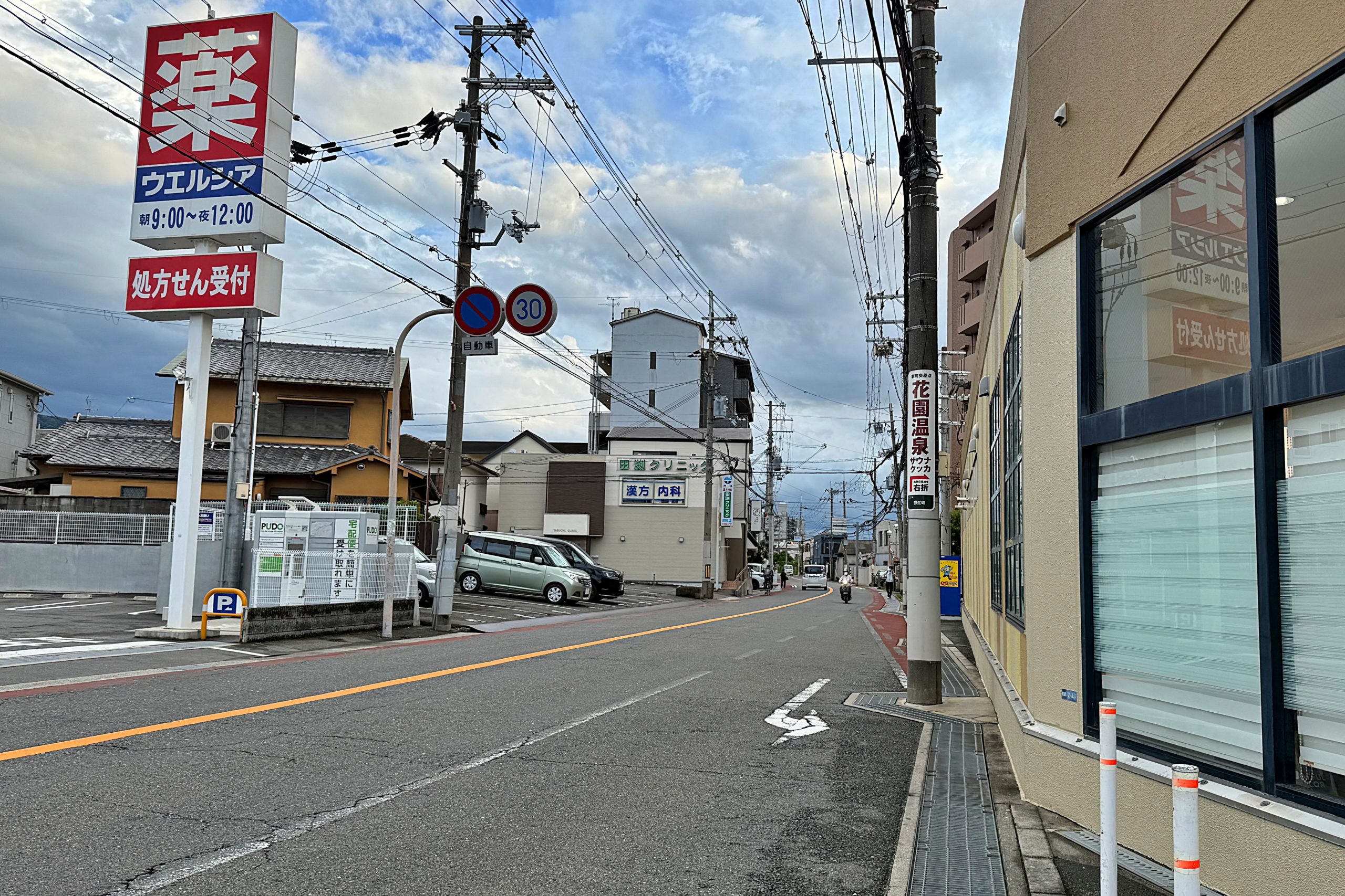 正解は、、、〒579-8026 大阪府東大阪市弥生町2-43付近。ショッピングモール「新石切プラザ」を右手に、旧大阪外環状線を南へ向かって撮影しました。左手は「ウエルシア東大阪東山店」。背中側は東山町南交差点で、北へ行くと新石切駅です。