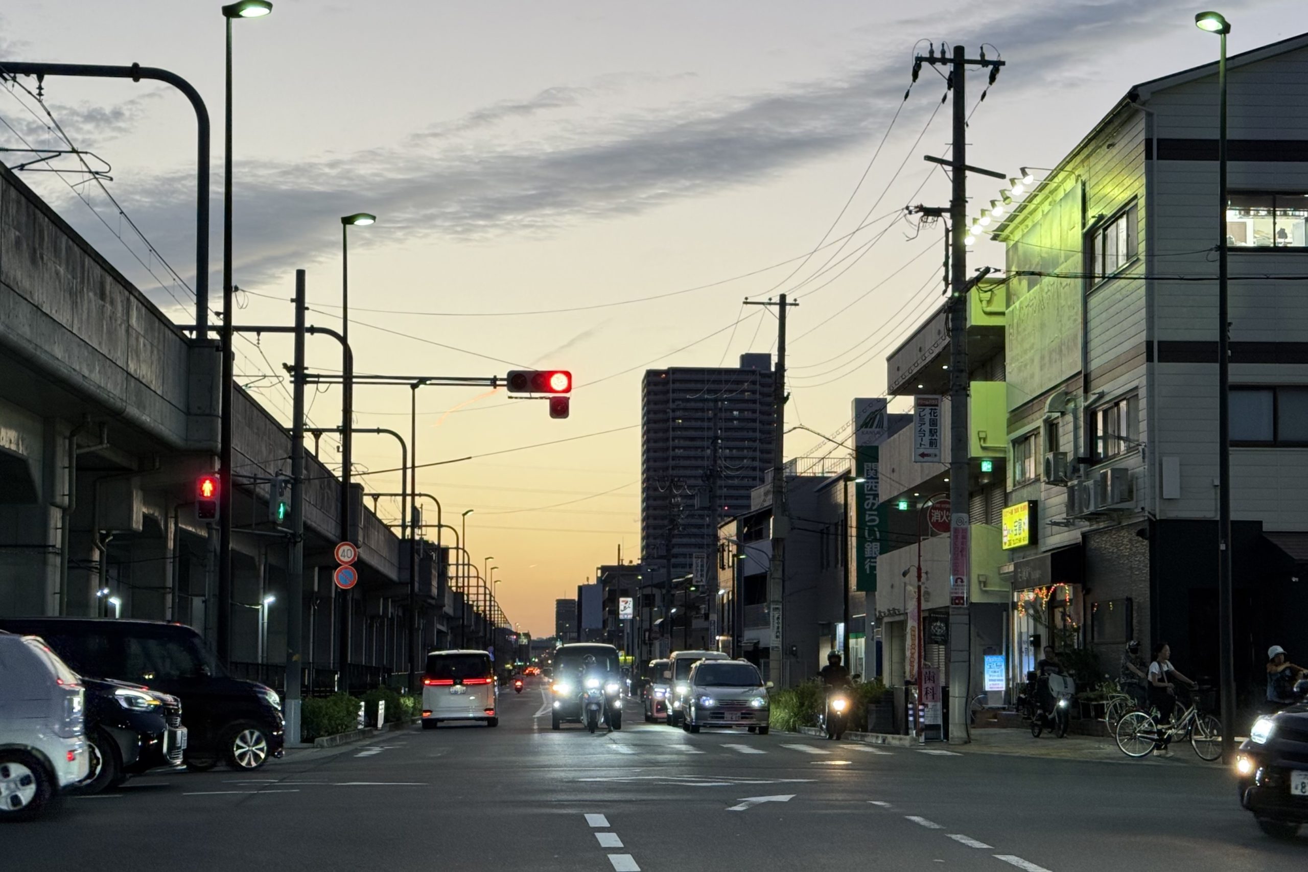 正解は、、、〒578-0925 大阪府東大阪市岩田町1-7付近、河内花園駅を背に西に向かって。交通量の多い夕方に撮影しました。