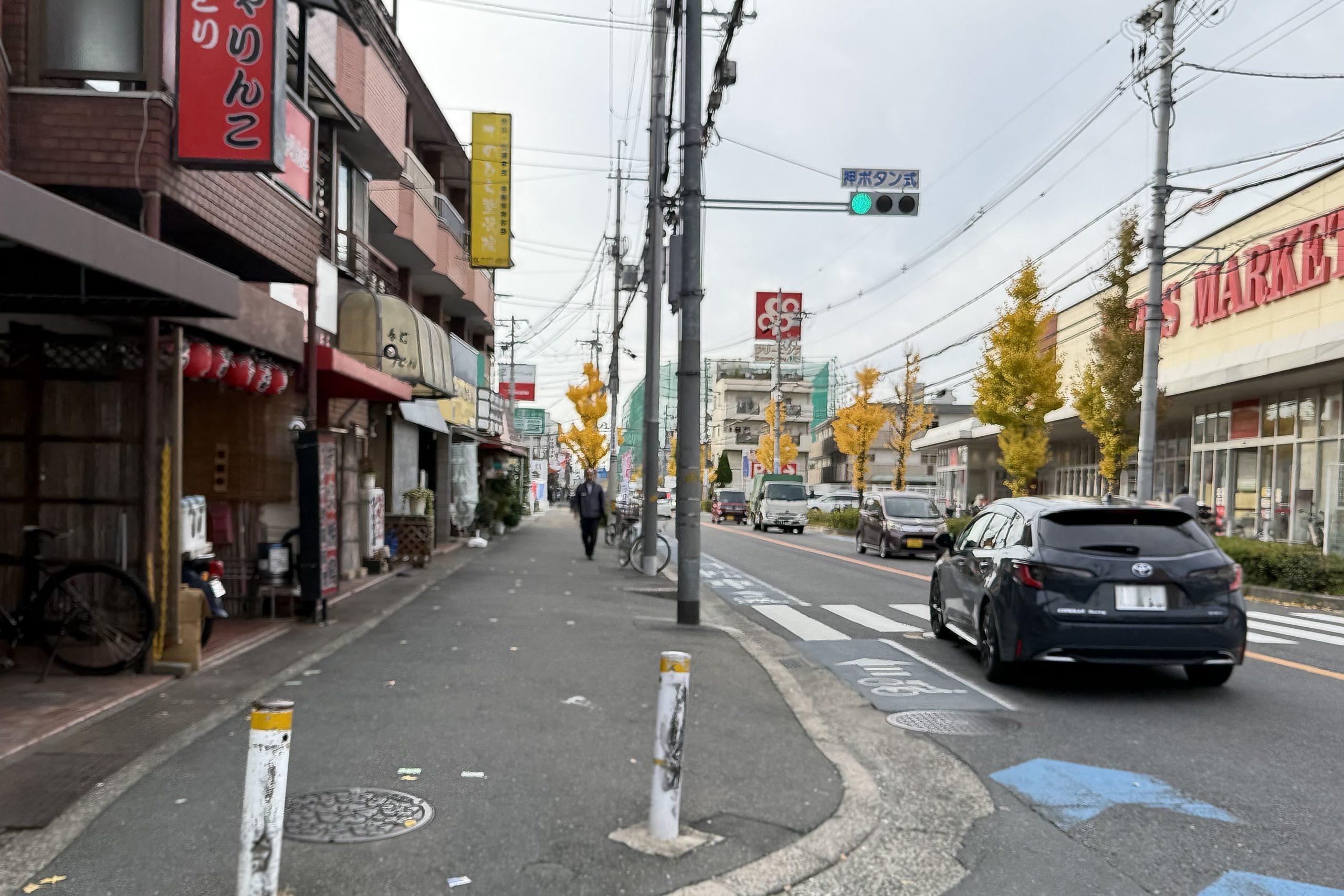 正解は、、、〒578-0935 大阪府東大阪市若江東町4-2付近、府道24号線を西に向かって撮影しました。右手はスーパー「コープ若江店」。