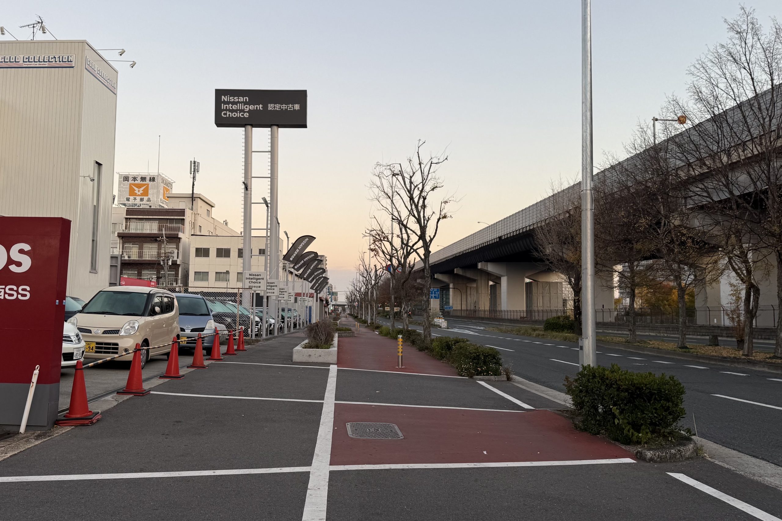 若江西交差点のENEOSから中環を北向きに撮影📸岡本無線さんのマーク、ワシのマークの薬の会社と似てるなぁと見る度に思います🦅
