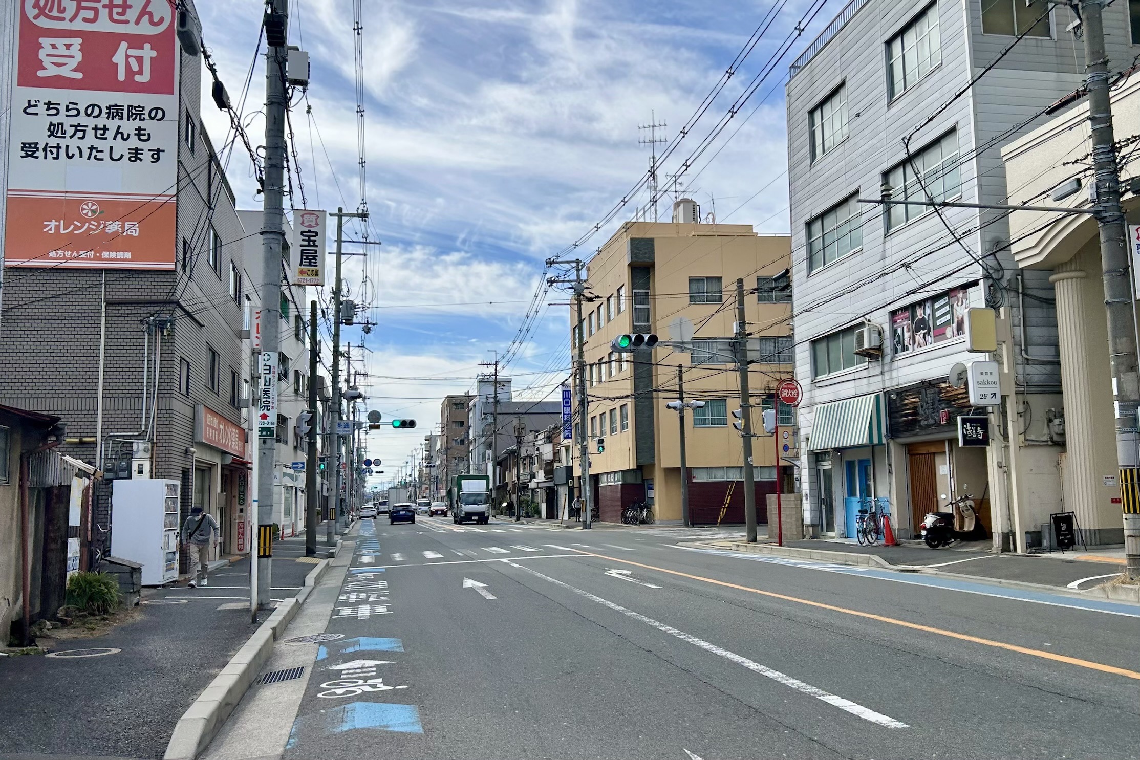 正解は、、、〒577-0843 大阪府東大阪市荒川1-4付近、府道24号線を南に向かって撮影しました。