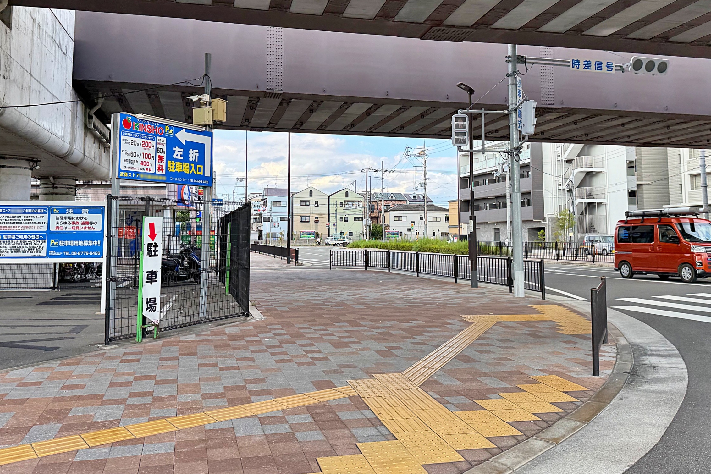 近鉄東花園駅西寄り。この箇所のみ跨道橋が鉄製。